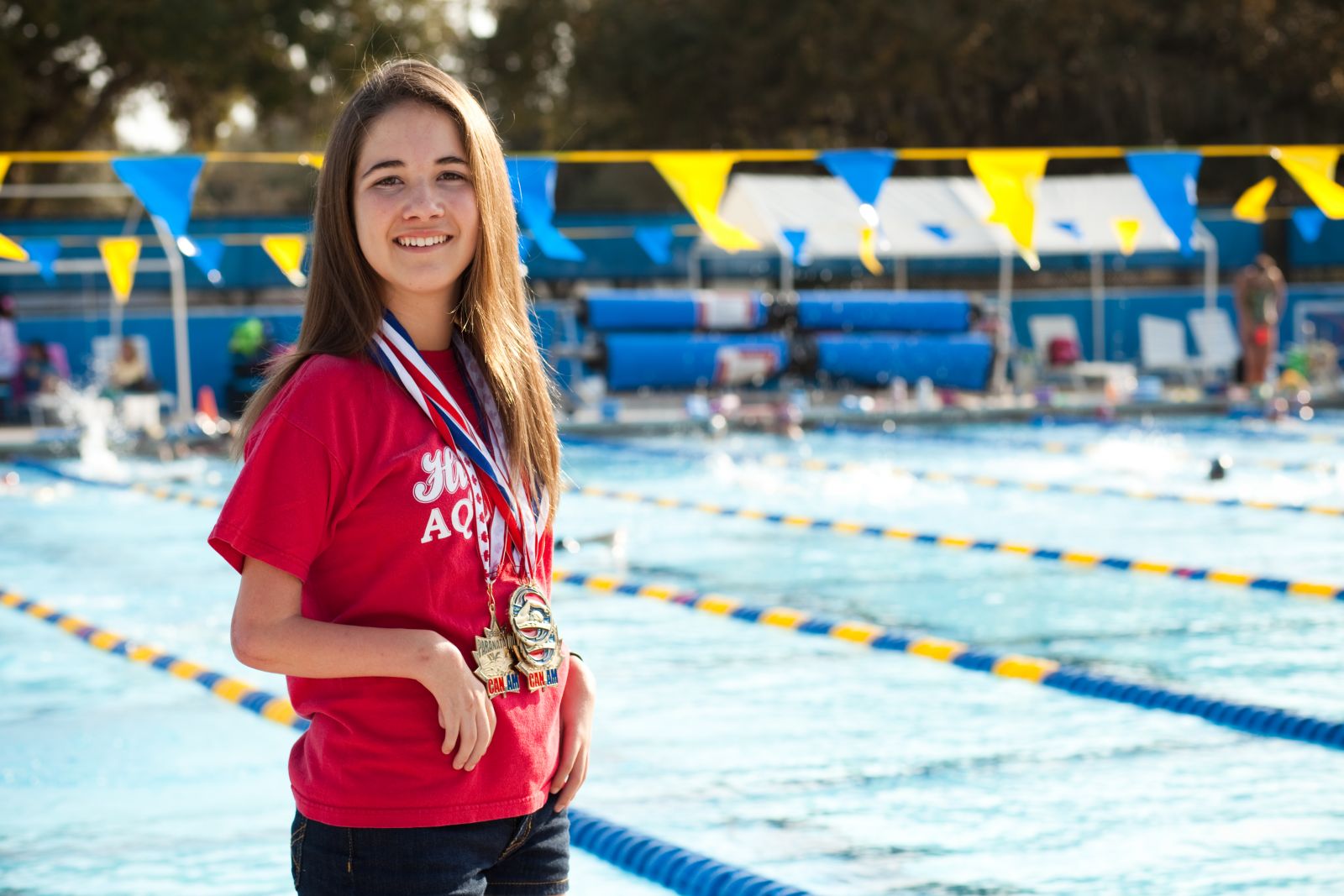 Though the disease caused her to be born without biceps or triceps, leading to limited use of her arms, she has not let that stop her from breaking four swimming records and placing in multiple prestigious swim meets throughout the country in the past year.