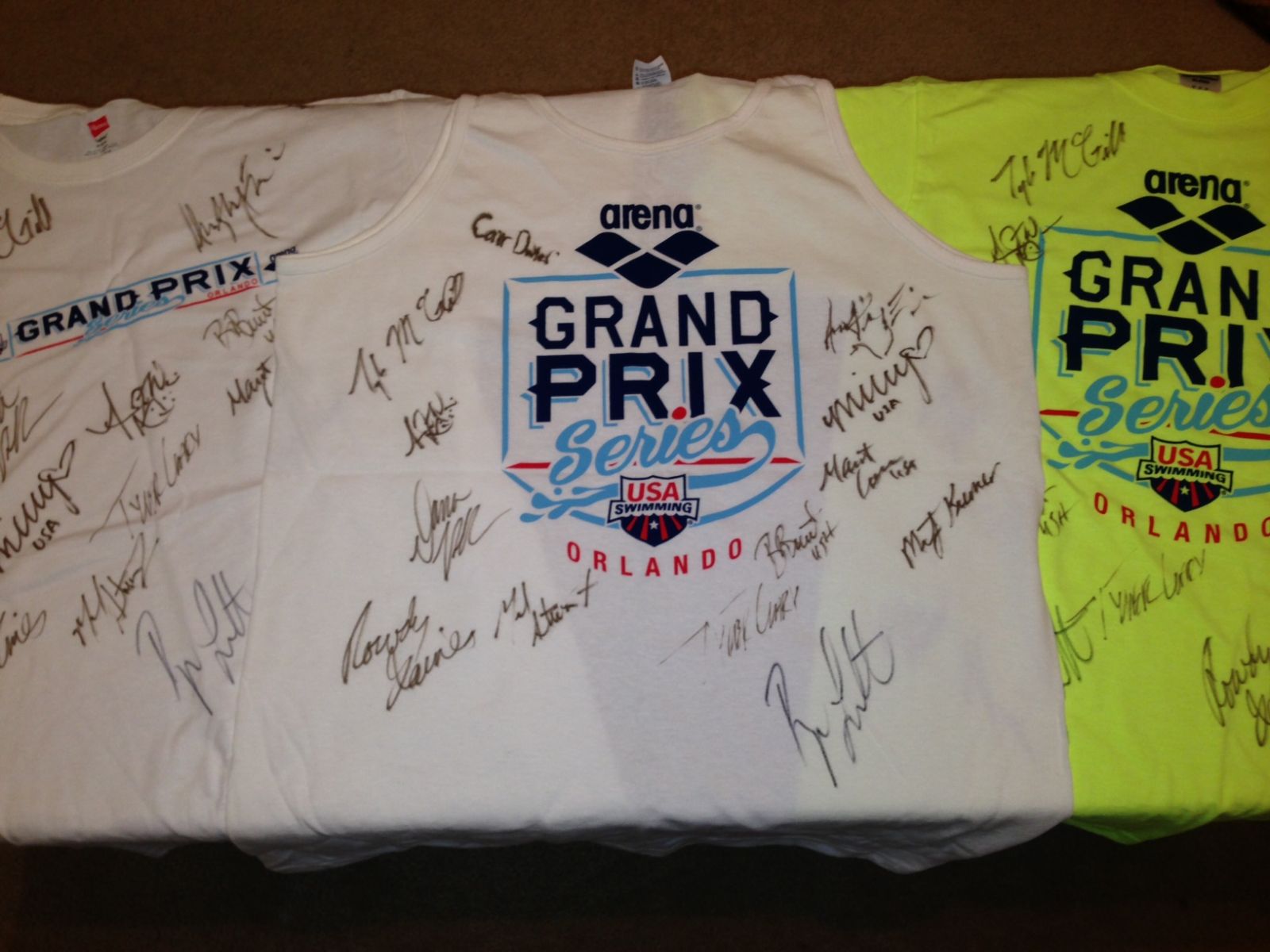 Don't miss the opportunity to have an Orlando Grand Prix T-shirt that was autographed by some of the greatest Olympians that have represented the USA in the Olympic Games.