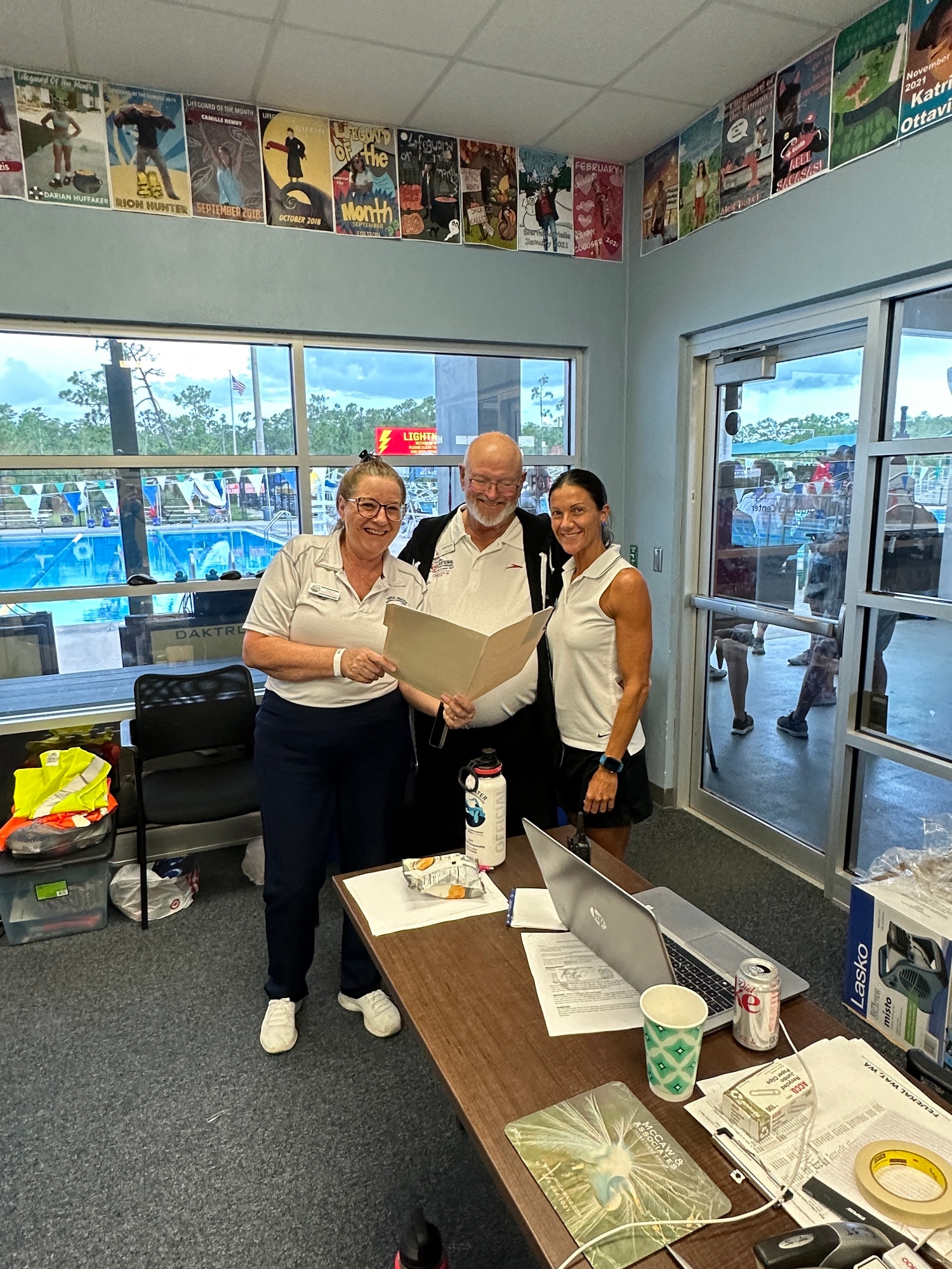 He also volunteered for several Florida Swimming Championship Meets, FHSAA Meets, Sectional Meets, USA Swimming National Swim Meets including US Olympic Team Trials.