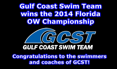 Gulf Coast Swim Team won the team title at the 2014 Florida Open Water Championships held at Miromar Lakes, Fl. Team Standings: 1 Gulf Coast Swim Team 118 2 Gator Swim Club 53 3 Swim Florida 51 4 West Florida Lightning Aquatic 30 5 T2 Aquatics 15 5 Clearwater Aquatic Team 15 5 Bolles School Sharks 15 Results